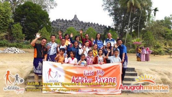 Pagi yang sejuk dan masih diselimuti gelap karena memang jarum jam baru menunjukkan pukul 04.00 WIB, Tim Anugrah Ministries yang sudah berada di Solo sehari sebelumnya, segera bersiap-siap untuk melaksanakan acara Field Trip Adikku Sayang 2015 untuk Distrik Jawa Tengah yang terdiri dari dua center, yaitu ALC Sangkrah dan ALC Sumpiuh. Adapun Field Trip dilaksanakan di Taman Wisata Candi Borobudur, Magelang – Jawa Tengah. Kedua center akan berkumpul di lokasi pada pukul 08.00 WIB.