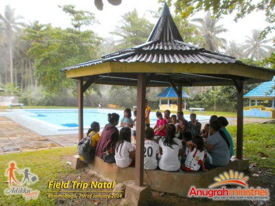Seven students who have been receiving Adikku Sayang scholarship were present with their parents. We took them all for a field trip to Wisata Alam, hot spring Bakan, which is located one hour from Kotamobagu.