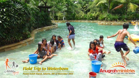 On the 18th December 2013, we took the Adikku Sayang children from ALC Mangga Ubi and Tanah Merah, Jakarta to go for a field trip in Waterbom, Pantai Indah Kapuk, to celebrate Christmas together and to give the children refreshing time after one semester of serious studying.