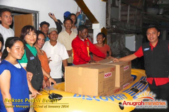 On the 22nd of January 2014, Anugrah Ministries went to help the flood victims in Kapuk Mangga Ubi, Jakarta. The purpose of doing this distribution is to care for those who are hungry, trapped in their flooded house, and need help.